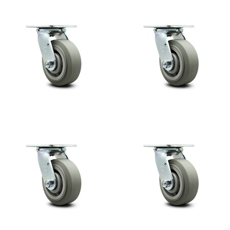 Thermoplastic Rubber Flat Tread Swivel Caster w/Main. Free Bearings Set of 4 w/5" x 2" Gray Wheels - Includes 4 Swivel w/Bolt on Swivel Locks - 1400 lbs Total Capacity - Service Caster Brand