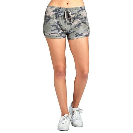 KOGMO Women's Camo Print French Terry Shorts with Elastic Waistband & Drawstring