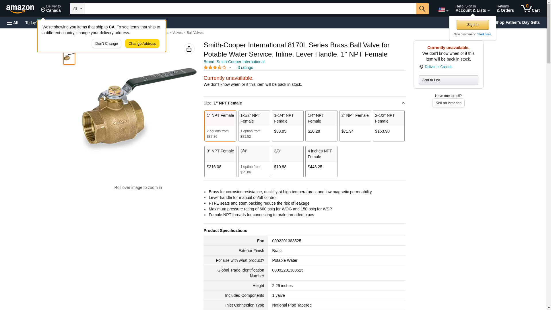 Smith-Cooper International 8170L Series Brass Ball Valve for Potable Water Service, Inline, Lever Handle, 1/2" NPT Female