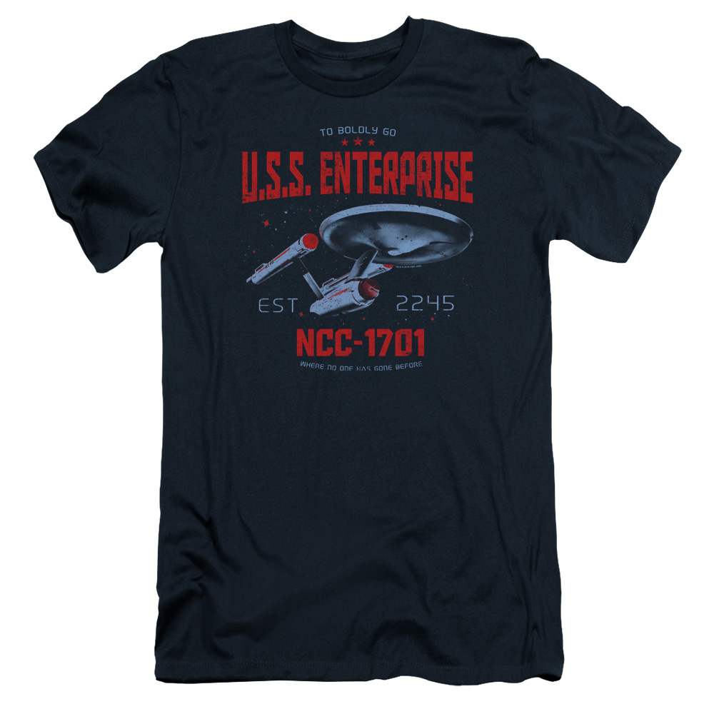 Trevco CBS2349-SF-4 Star Trek & Stardate 2245 Short Sleeve Adult Cotton 30-1 T-Shirt, Navy - Extra Large