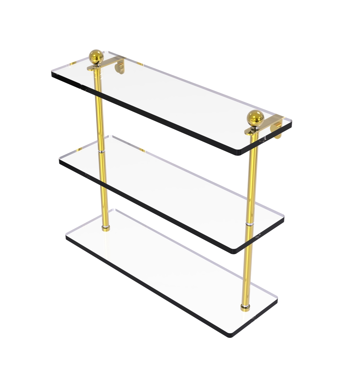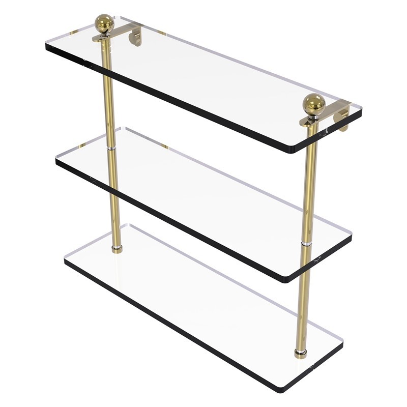 ALLIED BRASS PR-5/16-UNL PRESTIGE REGAL 16 INCH TRIPLE TIERED GLASS SHELF, UNLACQUERED BRASS