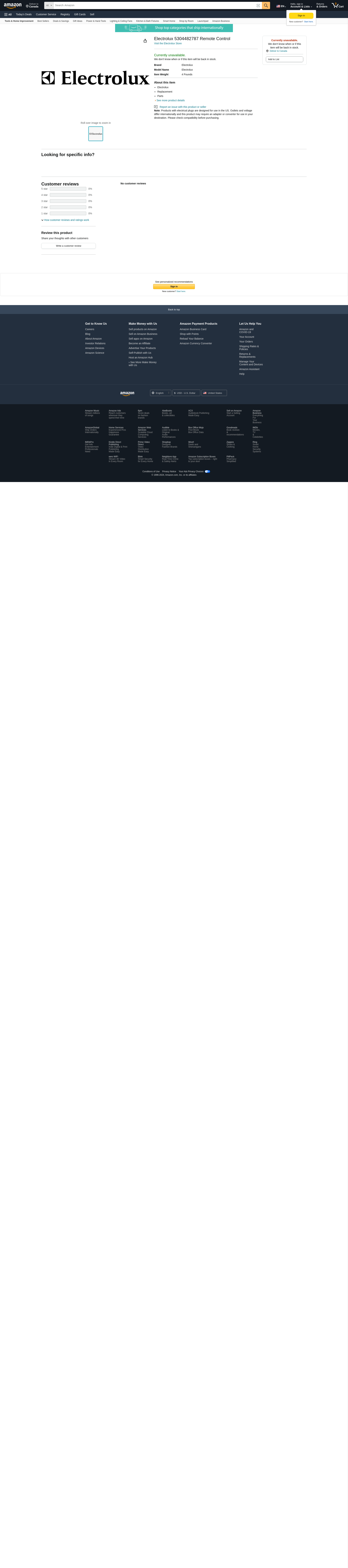 Electrolux 5304482787 Remote Control