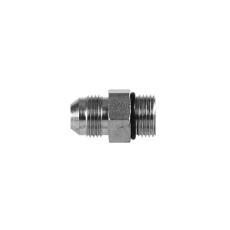 - Fitting has a JIC flared male connector on one end and an O-ring boss on the other