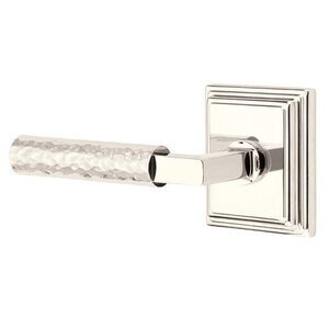 Select Levers Collection - Privacy Hammered Left Handed Lever with L-Square Stem and Wilshire Rose in Polished Nickel by Emtek - 8261US14.LSUS14.HAUS140.238.LH | MyKnobs
