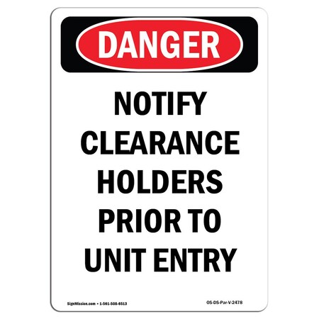 OSHA Danger Sign, Notify Clearance Holders Prior, 10in X 7in Decal