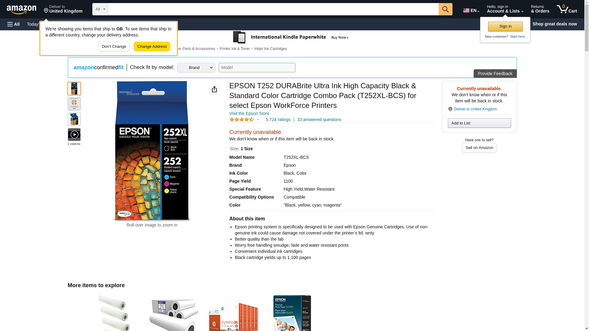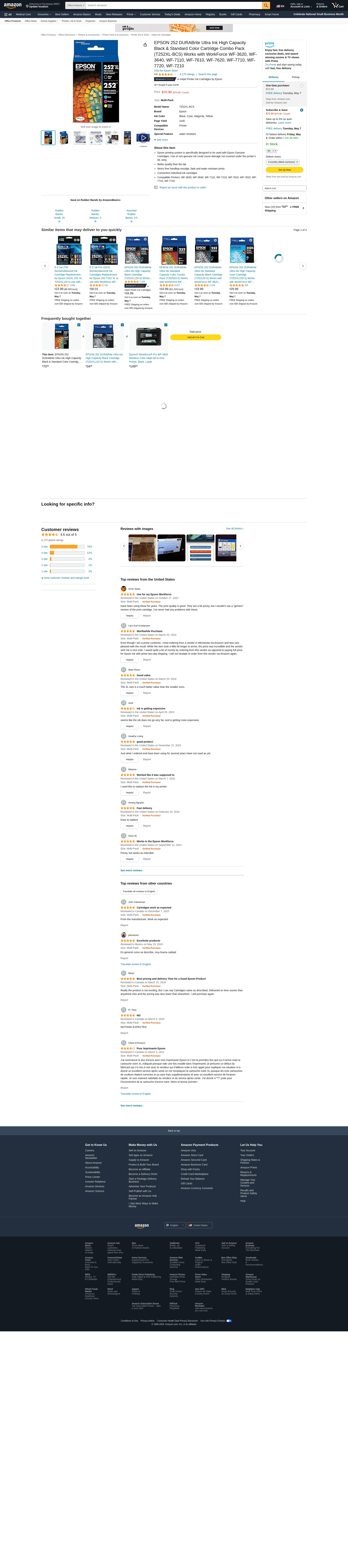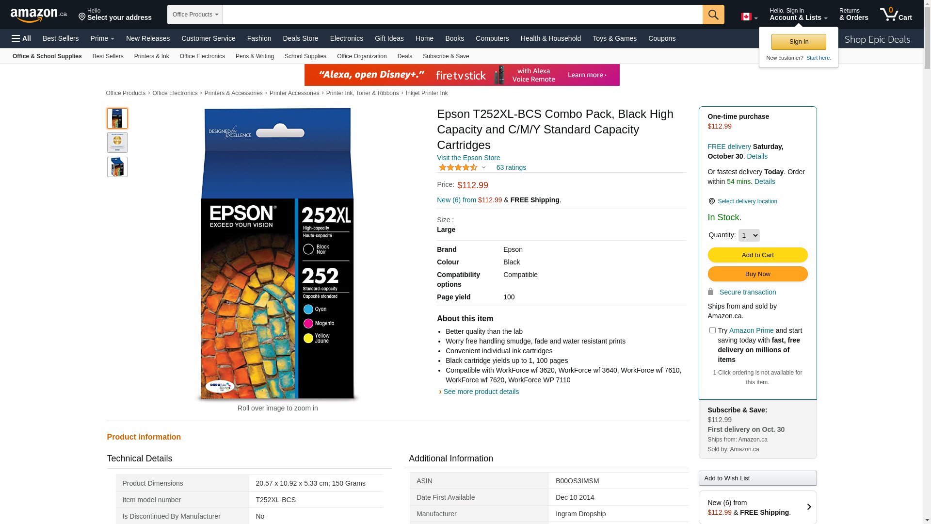 EPSON 252 DURABrite Ultra Ink High Capacity Black & Standard Color Cartridge Combo Pack (T252XL-BCS) Works with WorkForce WF-3620, WF-3640, WF-7110, WF-7610, WF-7620, WF-7710, WF-7720, WF-7210