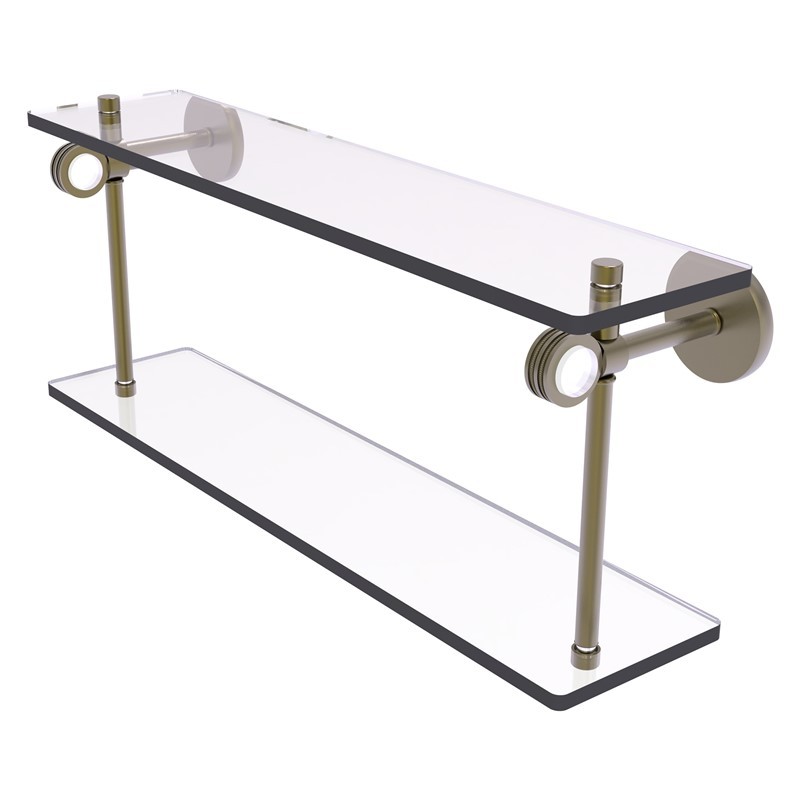 ALLIED BRASS CV-2D-22-ABR CLEARVIEW 22 INCH TWO TIERED GLASS SHELF WITH DOTTED ACCENTS, ANTIQUE BRASS