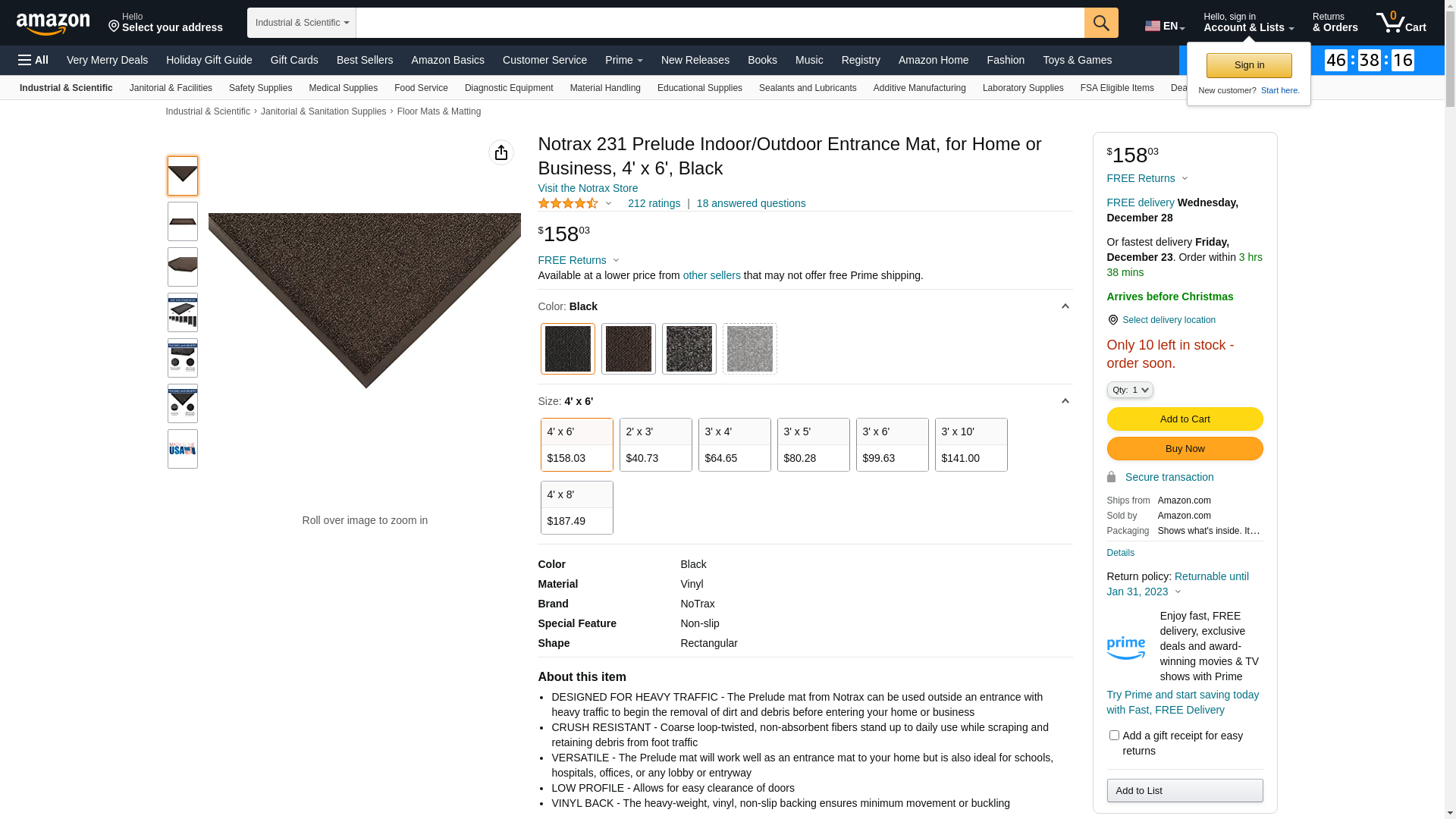 Notrax 231 Prelude Indoor/Outdoor Entrance Mat, for Home or Business, 4' x 6', Black