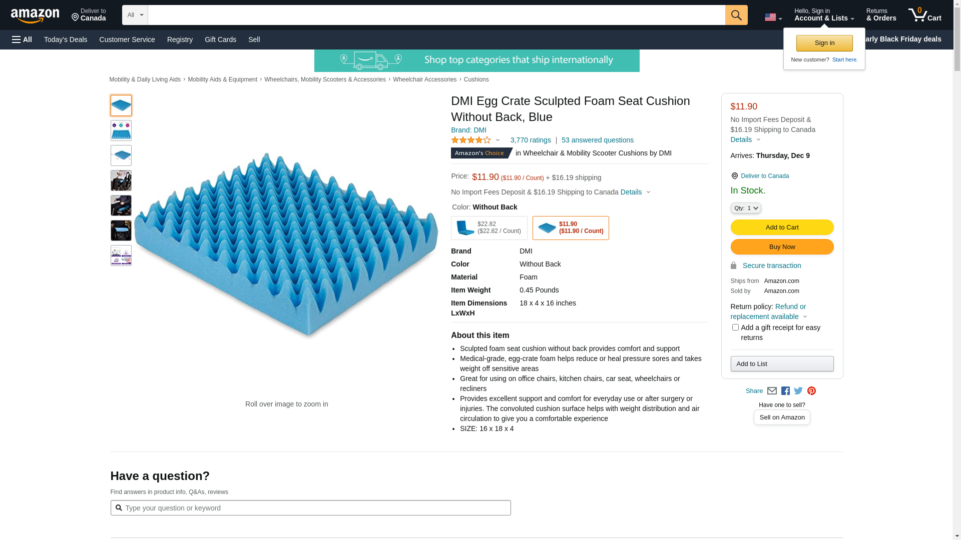 DMI Egg Crate Sculpted Foam Seat Cushion Without Back, Blue
