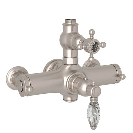 Rohl A4917XCSTN Rohl Italian Bath Exposed Thermostatic Valve With Volume Control And With Crystal Cross Handle On The Volume Control And Crystal Lever On The