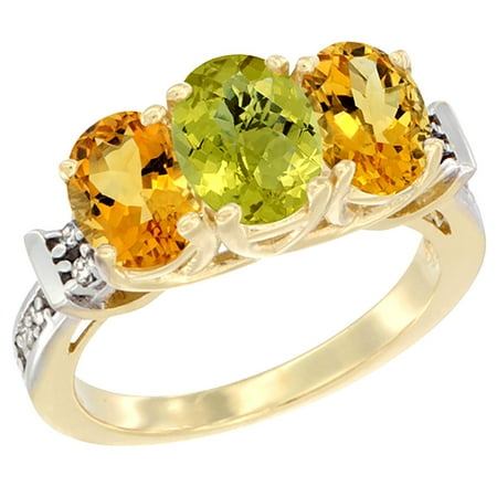 14K Yellow Gold Natural Lemon Quartz & Citrine Sides Ring 3-Stone Oval Diamond Accent, sizes 5 - 10