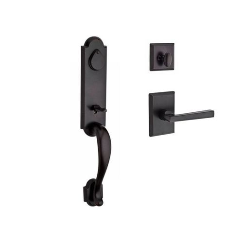 Baldwin Reserve SCKODXTAPRRSR481THK Single Cylinder Kodiak Handleset Right Hand Taper Lever and Rustic Square Rose with 6AL Latch and Dual Strike for Thick Door Dark Bronze Finish