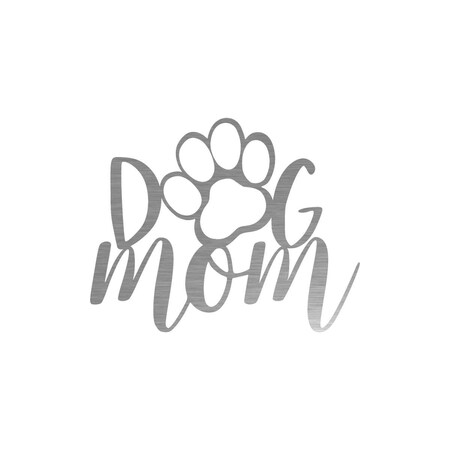Dog Mom Steel Laser Cut Wall Art with a Friendly Paw in a Shiny Natural Steel Finish