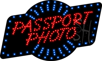 The Sign Store L100-9757 Passport Photo Animated LED Sign - Blue, Red & White - 18 x 30 x 1 in.