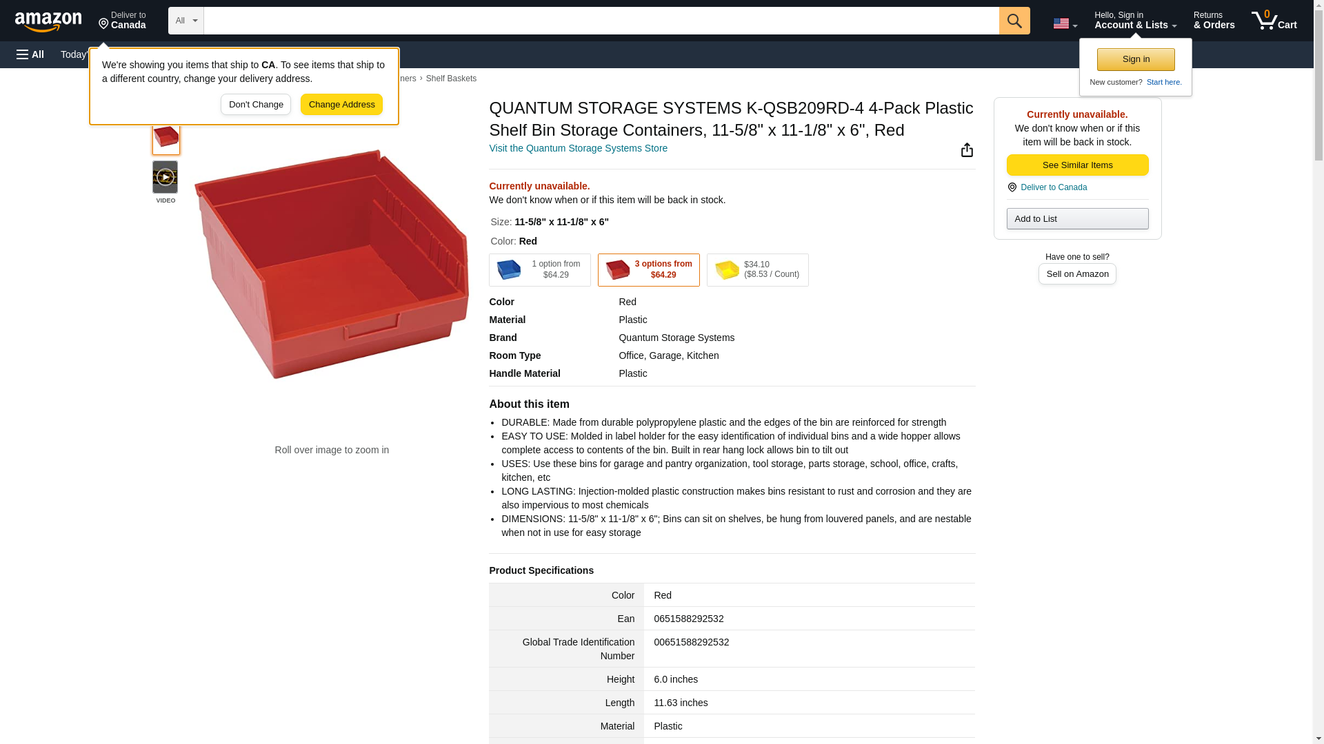 QUANTUM STORAGE SYSTEMS K-QSB209RD-4 4-Pack Plastic Shelf Bin Storage Containers, 11-5/8" x 11-1/8" x 6", Red