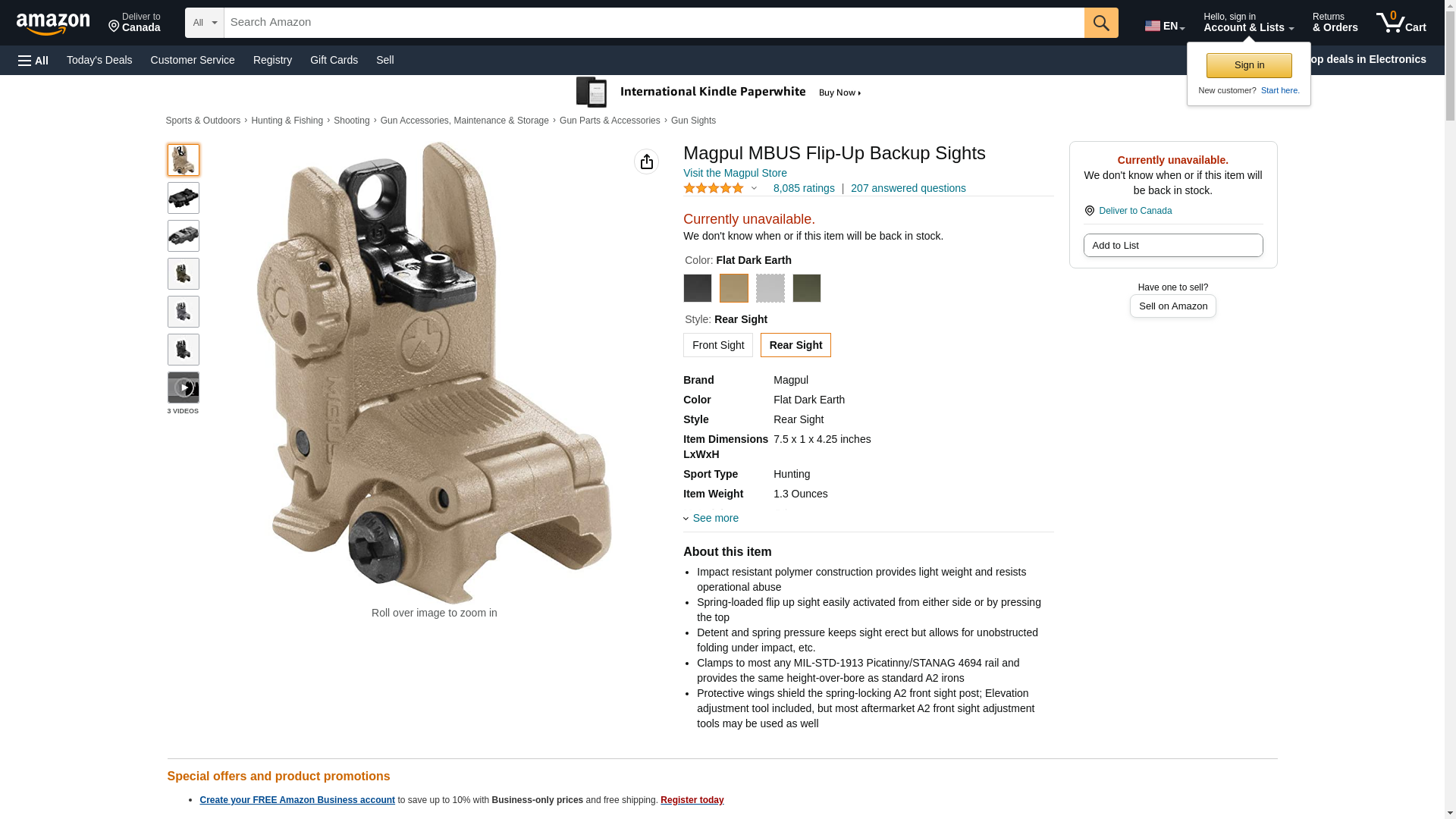 - Spring-loaded flip up sight easily activated from either side or by pressing the top
