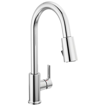 - High-arc, gooseneck design swivels 360 degrees for task management in the kitchen
