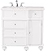 This white Hampton Bay bathroom vanity with drawers gives you and your family lots of organized storage space. It has three large drawers below the sink and one smaller drawer above the single-door cabinet. This vanity's elegant molding and smooth lines define its character.