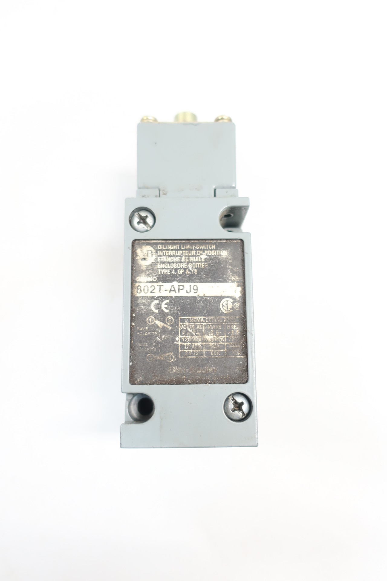 ALLEN BRADLEY 802T-APJ9 Plug-in, NEMA Type 4/13, Limit Switch, OILTIGHT Construction, CW and CCW Operation, 600 VAC MAX, 2-Circuit, 10 AMP MAX, Lever Type, Spring Return, Standard Operating Torque