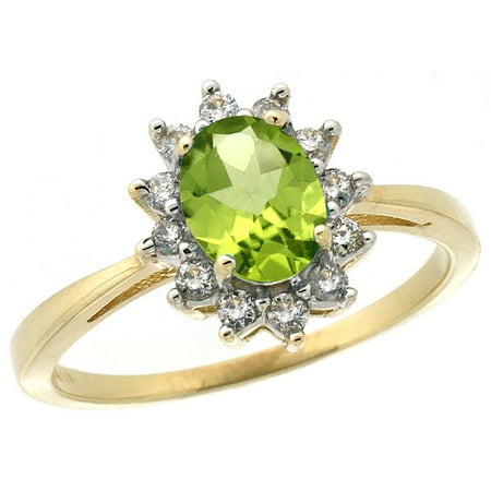 10k Yellow Gold Natural Peridot Engagement Ring Oval 7x5mm Diamond Halo, sizes 5-10