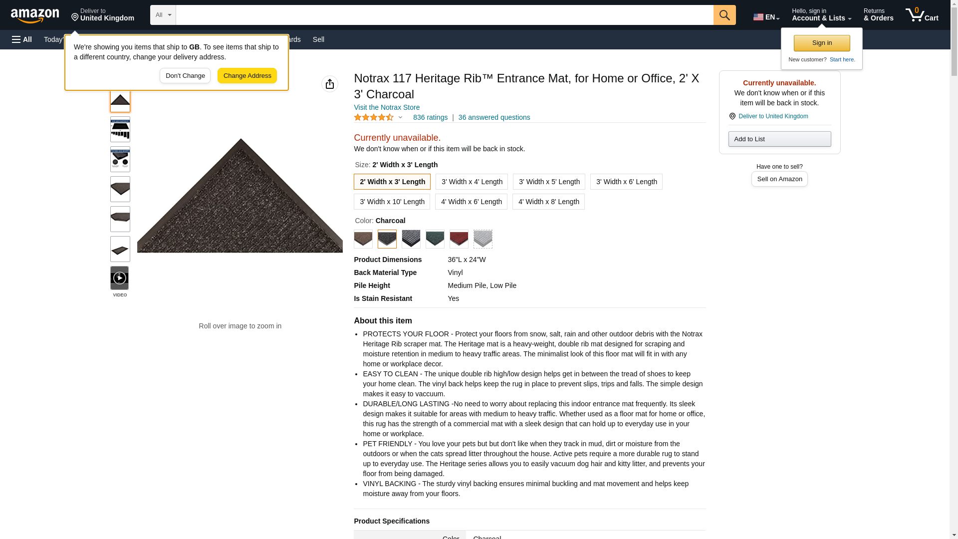 Notrax 117 Heritage Rib™ Entrance Mat, for Home or Office, 2' X 3' Charcoal