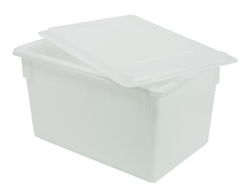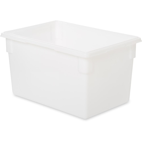 The Rubbermaid Commercial Food Storage Tote/Box is a durable, versatile and sized to fit into existing racks and counters. These bulk food storage containers are NSF and USDA Certified and constructed of break-resistant polycarbonate. Boxes and lids are dishwasher and freezer safe, include date panels, and have snap-on lids that are tight-fitting. Food Container Type: Storage/Tote Box; Material(s): Polyethylene; Capacity (Volume): 21.5 gal; Color(s): White.