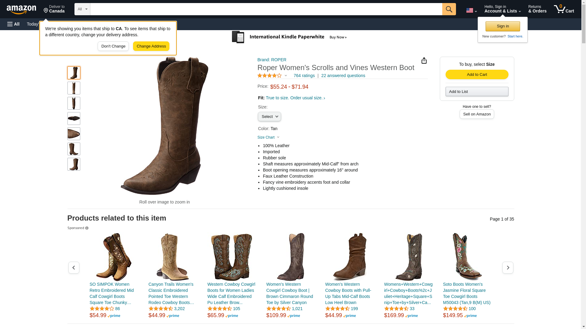 ROPER Women's Western Embroidered Fashion Boot, Tan 5 B - Medium