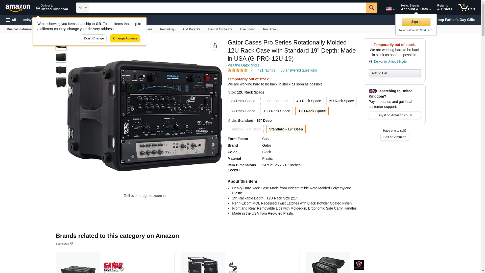 Gator Cases Pro Series Rotationally Molded 12U Rack Case with Standard 19" Depth; Made in USA (G-PRO-12U-19)