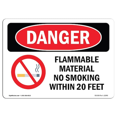 OSHA Danger Sign - Flammable Material No Smoking Within 20 Feet | Aluminum Sign | Protect Your Business, Construction Site, Shop Area | Made in The USA