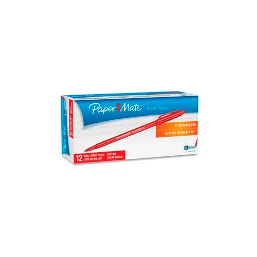 PAPERMATE 3920158 Eraser Mate Ballpoint Stick Erasable Pen, Red Ink, Medium, Dozen