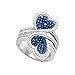 10kt White Gold Womens Round Blue Colored Diamond Double Heart Bypass Ring 1-1/10 Cttw