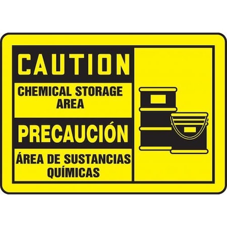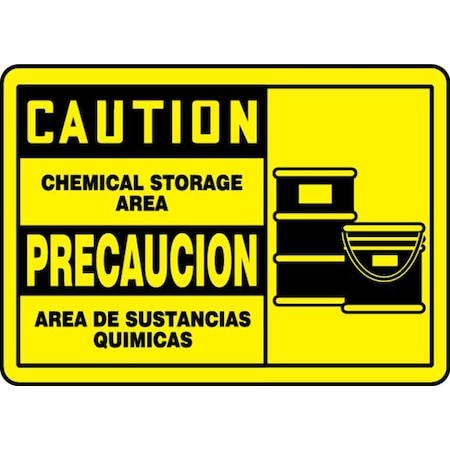 Accuform SBMCHL615MVA Aluminum Sign, Legend "Caution Chemical Storage Area/PRECAUCION Area DE SUSTANCIAS QUIMICAS", 10" Length x 14" Width, Black on Yellow