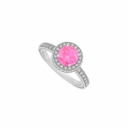 Fine Jewelry Vault UBUNR50277AGCZPS September Birthstone Pink Sapphire & CZ Engagement Ring in Sterling Silver, 14 S