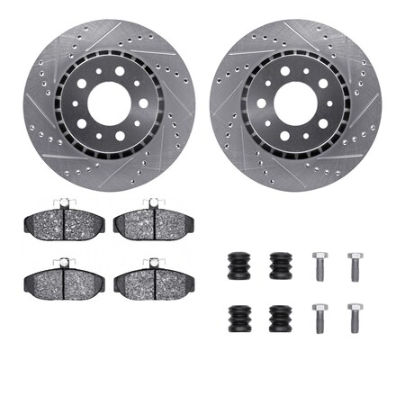 7512-27016, Rotors-Drilled and Slotted-Silver w/ 5000 Advanced Brake Pads incl. Hardware, Zinc Coat
