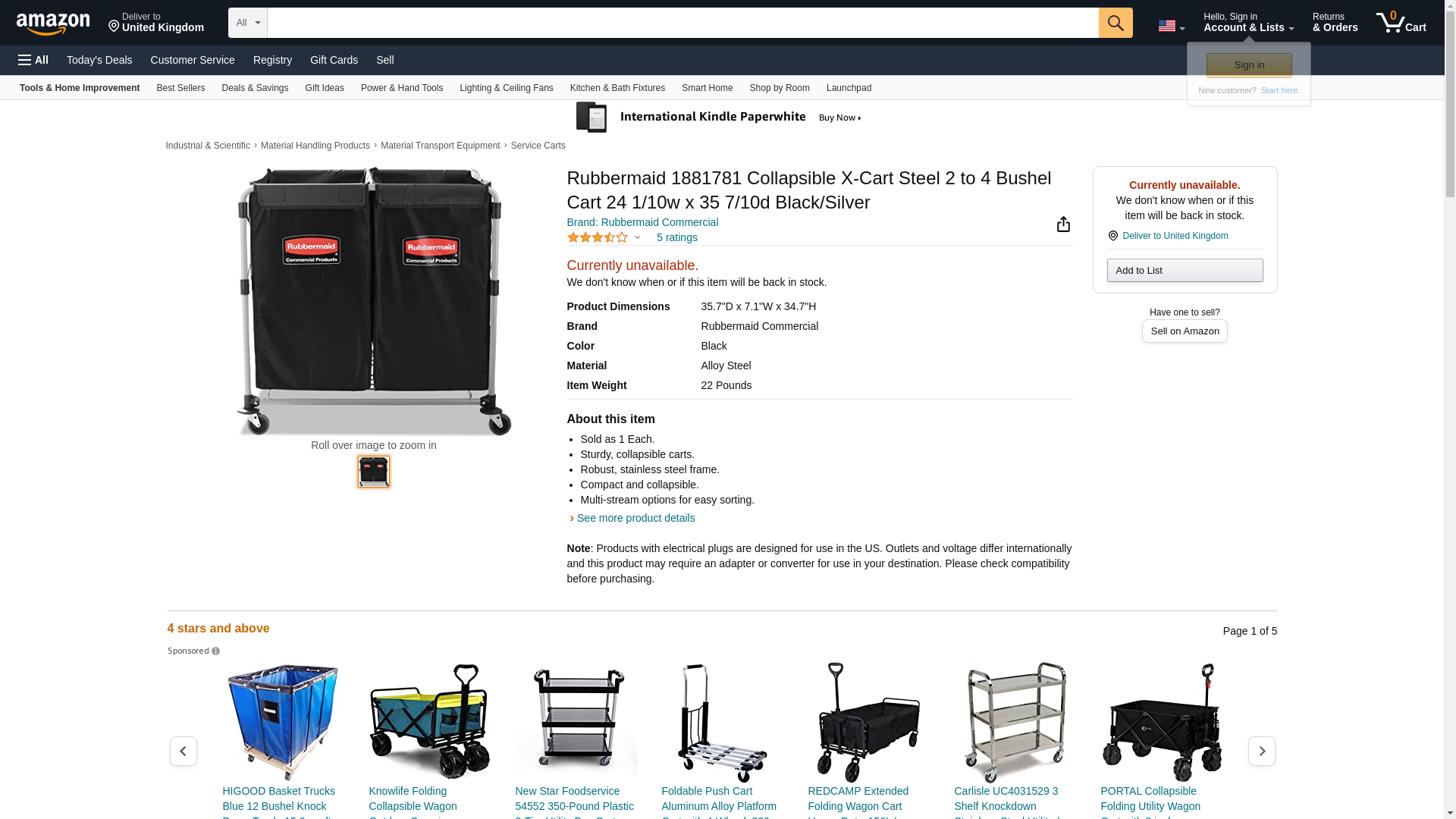 Rubbermaid Collapsible X-Cart, 4 Bushel, 34 5/8"H X 24 1/8"W X 35 3/4"D, Black