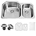 VIGO 31 inch Undermount 70/30 Double Bowl 18 Gauge Stainless Steel Kitchen Sink with Two Grids and Two Strainers
