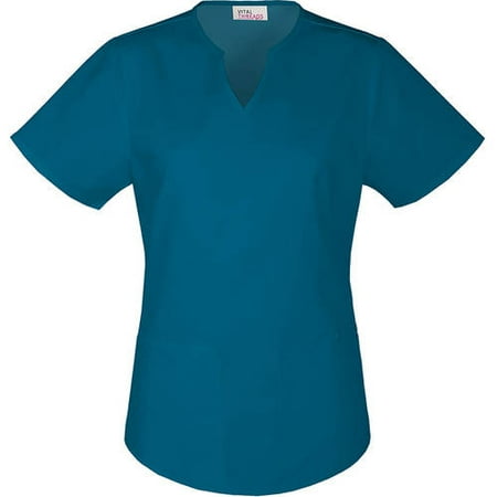 <ul> <li>Vital Threads Split V-Neck Top</li> <li>Split V-neck styling</li> <li>Front and back forward side seams</li> <li>Two roomy front patch pockets</li> <li>Utility-loop detail</li> <li>V-neck scrub top features a shirt-tail hemline</li> <li>65% Polyester/ 35% Cotton</li> </ul>