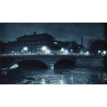Stretched Canvas Art - France: Paris, C1920. /Nthe Exchange Bridge At Night. Photograph, C1920. - Medium 18 x 24 inch Wall Art Decor Size.