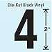 - Price For: Each Item: Die Cut Number Label Material: Vinyl Color: Black Overall Width: 1-1/4" Overall Height: 2" Character: 4 Country of Origin (subject to change): United States