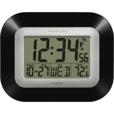 La Crosse Technology WT-8005U-S Atomic Digital Wall Clock with Indoor Temperature, Silver