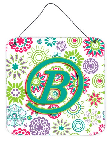 Caroline's Treasures CJ2011-BDS66 Letter B Flowers Pink Teal Green Initial Wall or Door Hanging Prints Aluminum Metal Sign Kitchen Wall Bar Bathroom Plaque Home Decor, 6x6, Multicolor