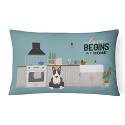 Carolines Treasures CK7837PW1216 12 x 3 x 16 in. Black White Bull Terrier Kitchen Scene Canvas Fabric Decorative Pillow