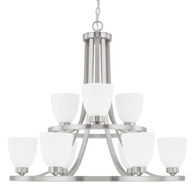 HomePlace Lighting 414391BN-333 Jameson Transitional Soft White Glass Chandelier, 9-Light 540 Total Watts, 28" H x 30" W, Brushed Nickel
