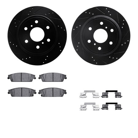 8512-48063, Rotors-Drilled and Slotted-Black w/ 5000 Advanced Brake Pads incl. Hardware, Zinc Coated