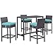 Modway Convene Wicker Rattan 5-Piece Outdoor Patio Pub Bistro Set in Espresso Turquoise