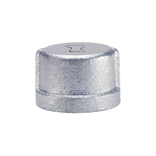 'Cap, Pipe Fitting Material Galvanized Malleable Iron, Fitting Schedule/Class Class 150, Pipe Size (Fittings) 1 In., Fitting Connection Type FNPT, Standards UL Listed, FM Approved, Meets ASME B16.3, ASTM A197, Max. Pressure 300 psi @ 150 Degrees F WOG, Saturated Steam Pressure 150 psi @ 350 Degrees F, Temp. Range -20 Degrees to 350 Degrees F'