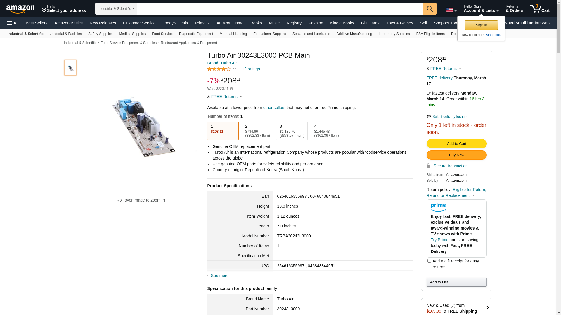 | TUR030243L3000 | 1 | 1 | 1 @ $335.74 | ||