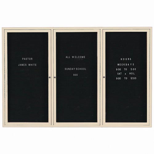 Aarco ADC4872-3IIV 48" x 72" Enclosed Hinged Locking 3 Door Powder Coated Ivory Aluminum Indoor Lighted Message Center with Black Letter Board
