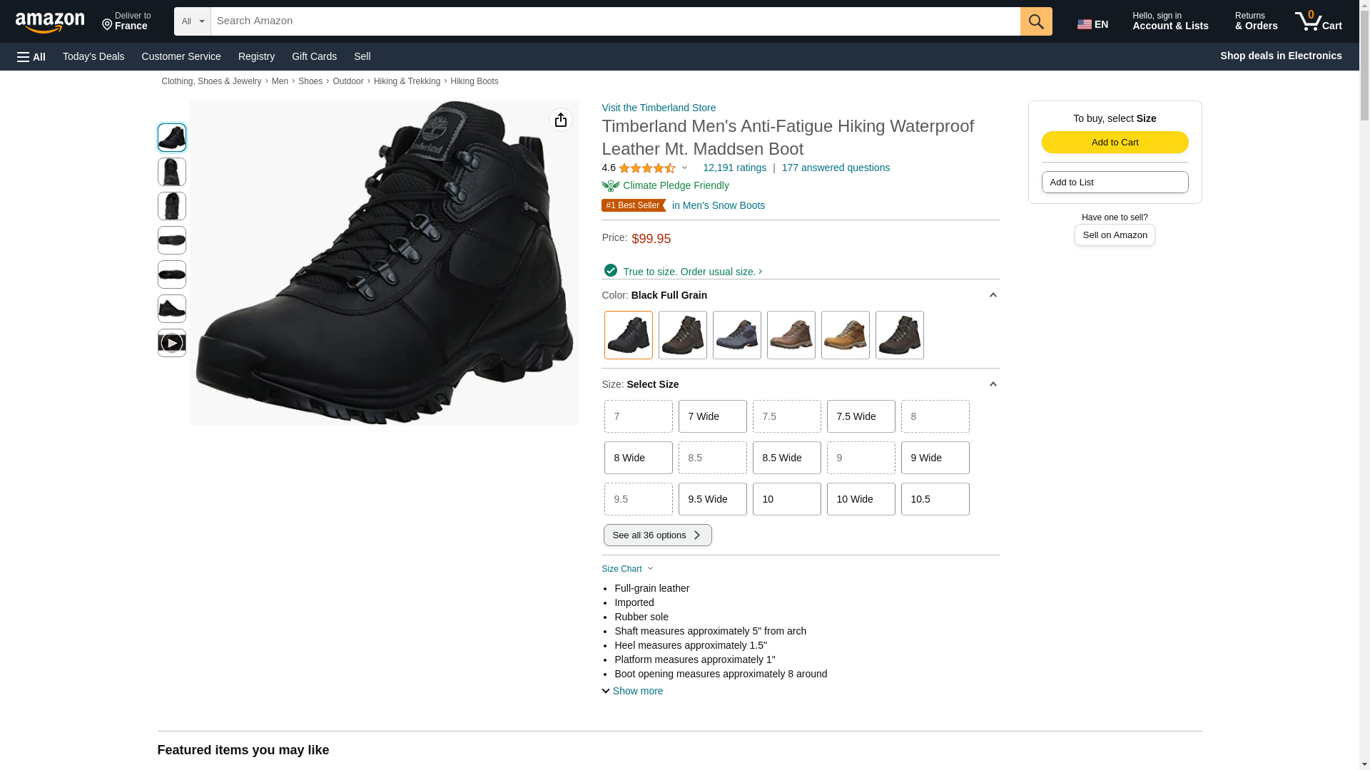 Timberland Men's Anti-Fatigue Hiking Waterproof Leather Mt. Maddsen Boot, Black, 7.5 Wide