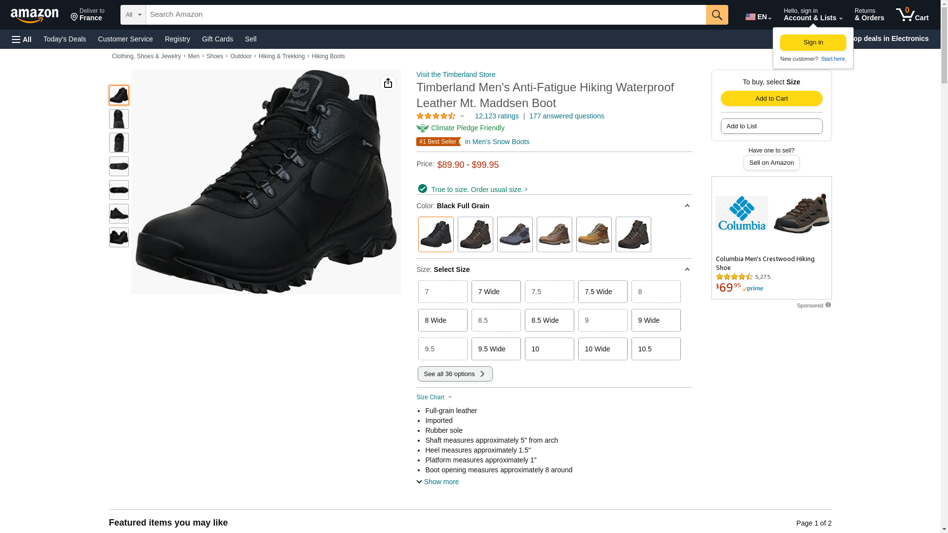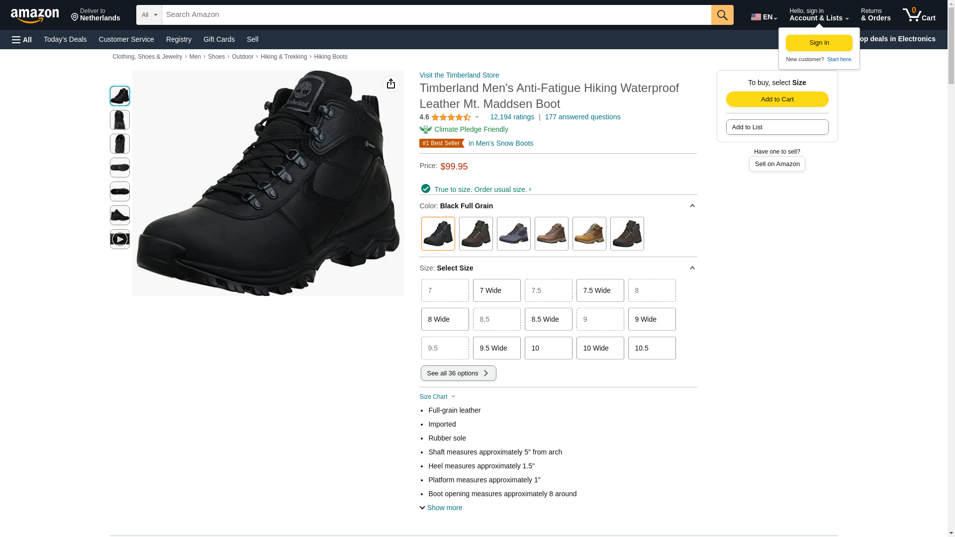 Timberland Men's Anti-Fatigue Hiking Waterproof Leather Mt. Maddsen Boot, Black, 8 Wide
